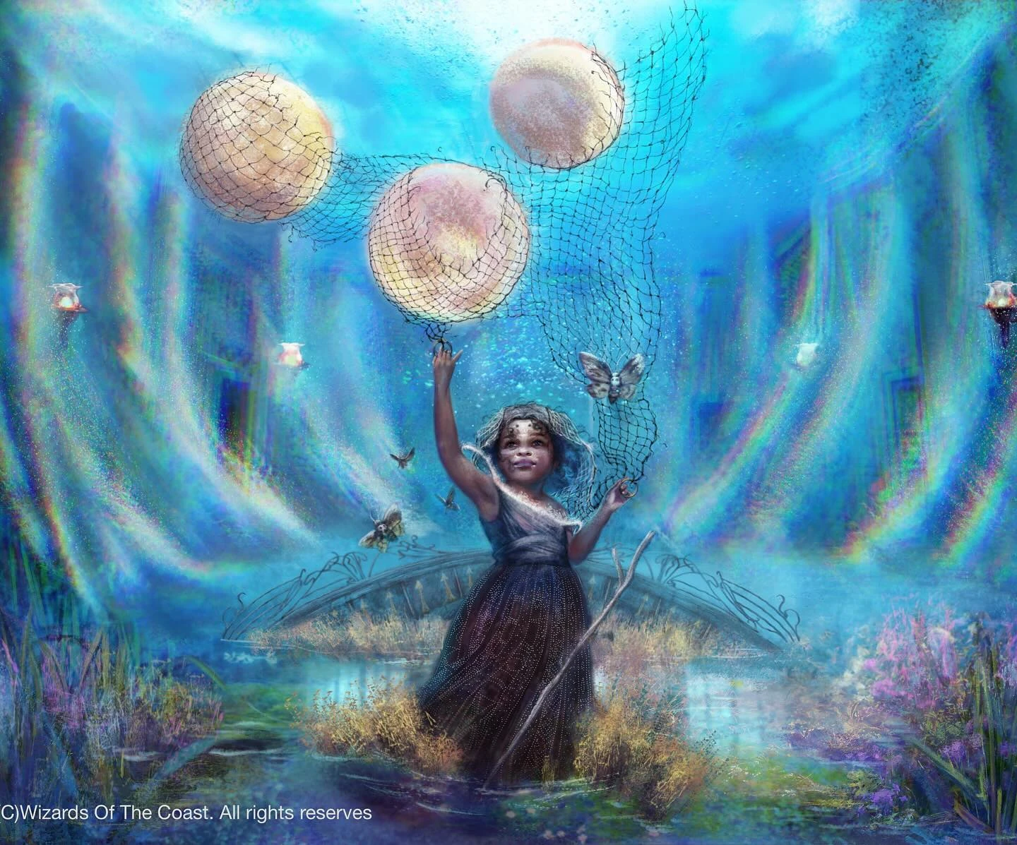 Davanti alla confusione degli altri Aminatou spiegò che la sua magia e quella della Casa si deviavano a vicenda e ciò le permetteva di dargli dei plasmafato, degli incantesimi protettivi consumabili che avrebbero permesso loro di vedere visioni del futuro quando avessero preso una decisione che avrebbe portato alla loro morte, ma avvertì che funzionavano solo una volta per ogni singola persona. Le sue parole fecero infuriare sia Niko Aris che Tyvar Kell che l'accusarono per non aver dato prima quell'aiuto durante l'invasione, permettendo le numerose morti e impedendo l'inizio della guerra. La bambina replicò che anche quando era ancora una planeswalker il suo potere non funzionava in quel mondo, che lei non privava le persone delle scelte, ma avvertì Niko che se non avesse preso il suo dono uno di loro sarebbe sicuramente morto. La Viandante intervenne, la ringraziò per il suo dono accettandolo e poi le affidò Yoshimaru chiedendole di prendersi cura del suo amico.