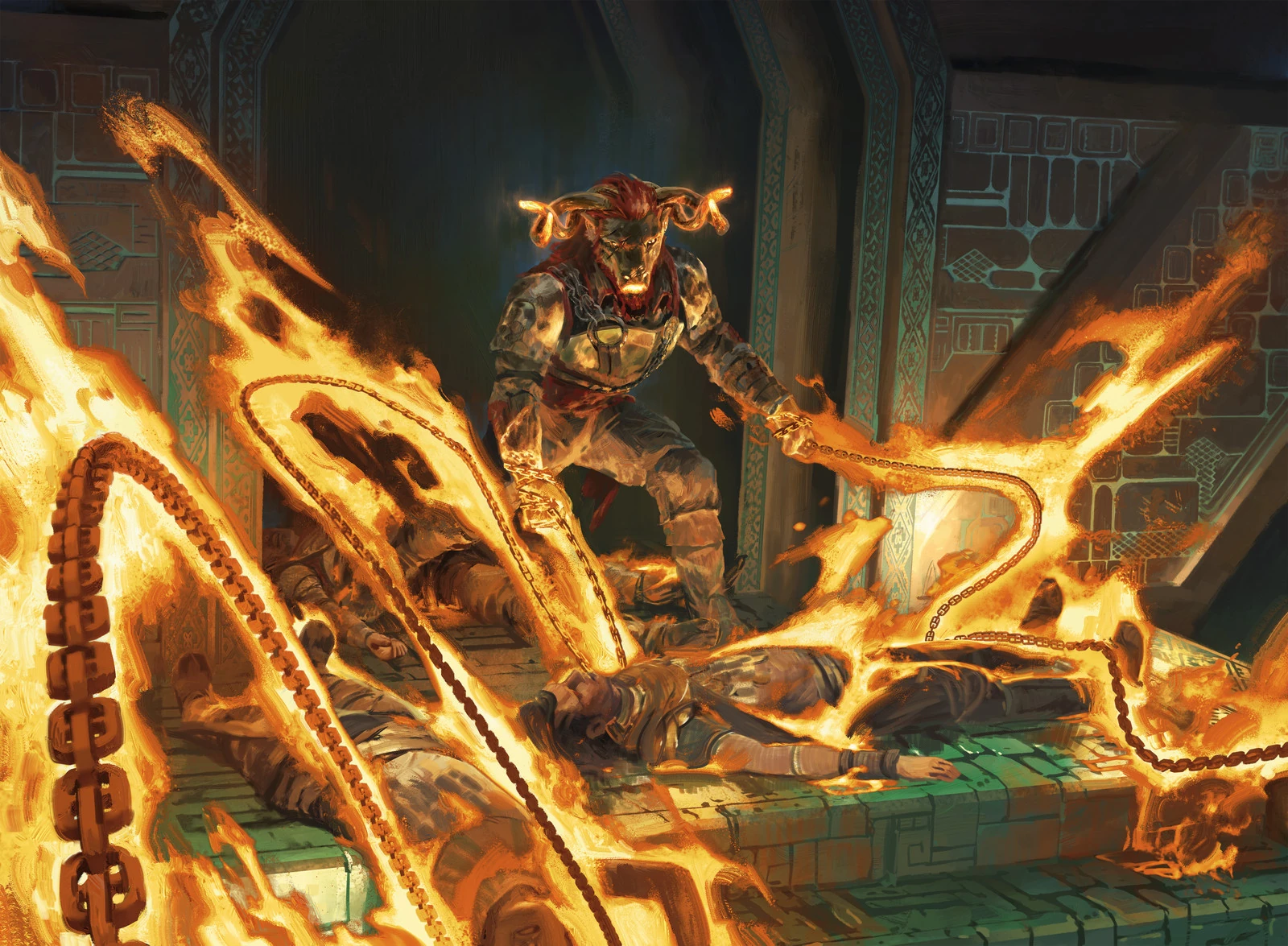 Quando Angrath viaggia tra i piani del multiverso, scompare in uno scoppio di fiamma.