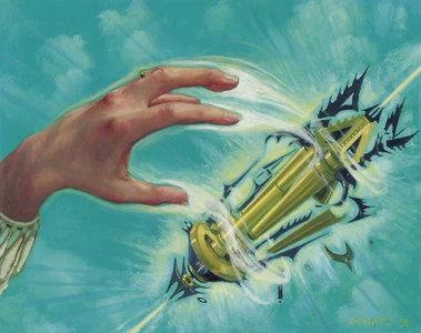 - L'art di Giancola rappresenta una mano che distrugge con la magia un manufatto.