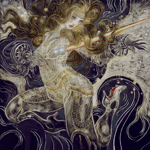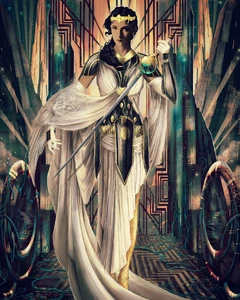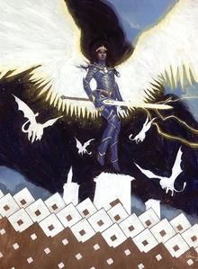 Dopo la sua resurrezione in arcangelo, le sono ovviamente cresciute le ali d'oro che tuttavia non sono simili a quelle degli angeli di Capenna, ma a una combinazione tra quelle di un angelo di Serra e un angelo di Alara, con piume d'oro molto vistose. La sua armatura è ora completamente priva di maglie evidenti e protegge interamente il suo corpo. Al centro del petto due sfere simili alla guardia della Nemesi degli Dei, la sua vecchia arma. I suoi occhi brillano di luce dorata, come due candele al posto delle pupille e anche la tiara è più grande.