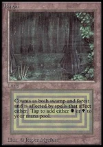 Il template che contraddistingue le prime tre edizioni (Alpha, Beta e Unlimited) è composto da un'inchiostratura scura, che vede in alto a sinistra della carta il nome, il Costo di mana in alto a destra, l'Illustrazione subito sotto, poi ancora la Riga del tipo, il Riquadro del testo, il nome dell'artista e la Riga del copyright.