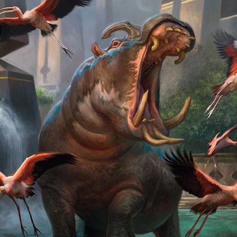 Grossi e aggressivi ippopotami che abitano i fiumi di Amonkhet. Possiedono lunghe zanne e corna sulla testa, e alcuni dei loro denti crescono in maniera anomala.