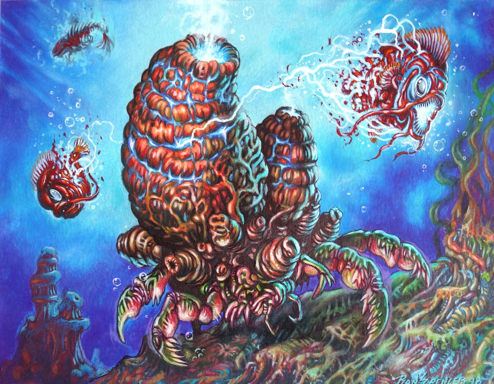 Le spugne sono esseri invertebrati caratterizzati da un corpo ricco di pori e canali, adatti a far circolare e filtra l'acqua. Solitamente attaccati agli scogli, alcune specie carnivore hanno sviluppato delle zampe simili a quelle dei granchi per andare direttamente a caccia di pesci. Altri esemplari hanno invece adottato uno stile di vita simile a quello delle meduse o dei calamari.